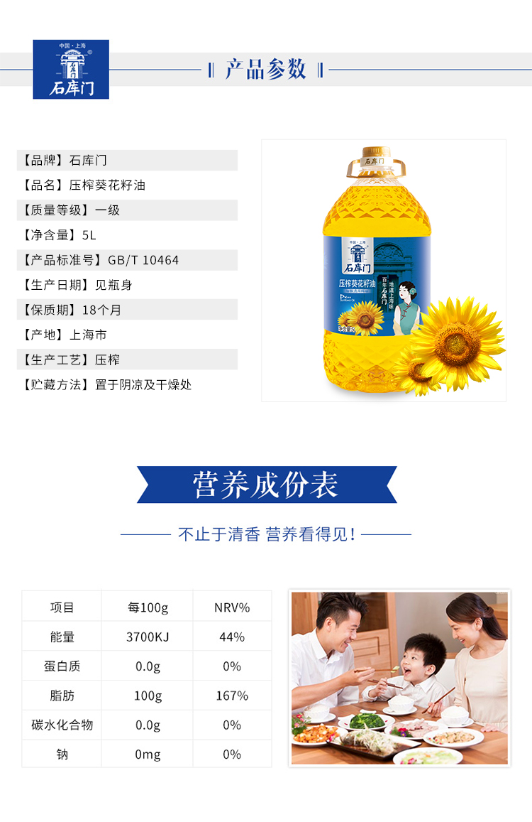 商品名称:石库门 葵花籽油5L